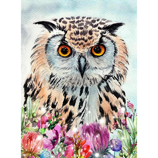 Мозаика алмазная 22*32см."Филин в цветах" с подр.,с полн.зап. 24цв.