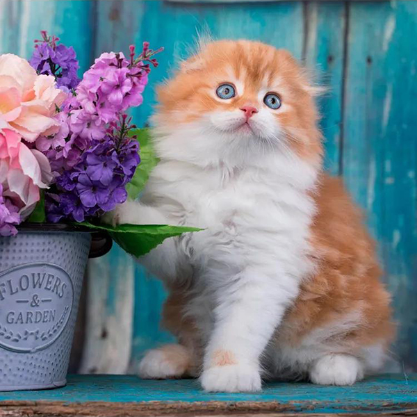 Мозаика алмазная 22*32см."Котик нюхает цветы" с подр.,с полн.зап. 24цв.
