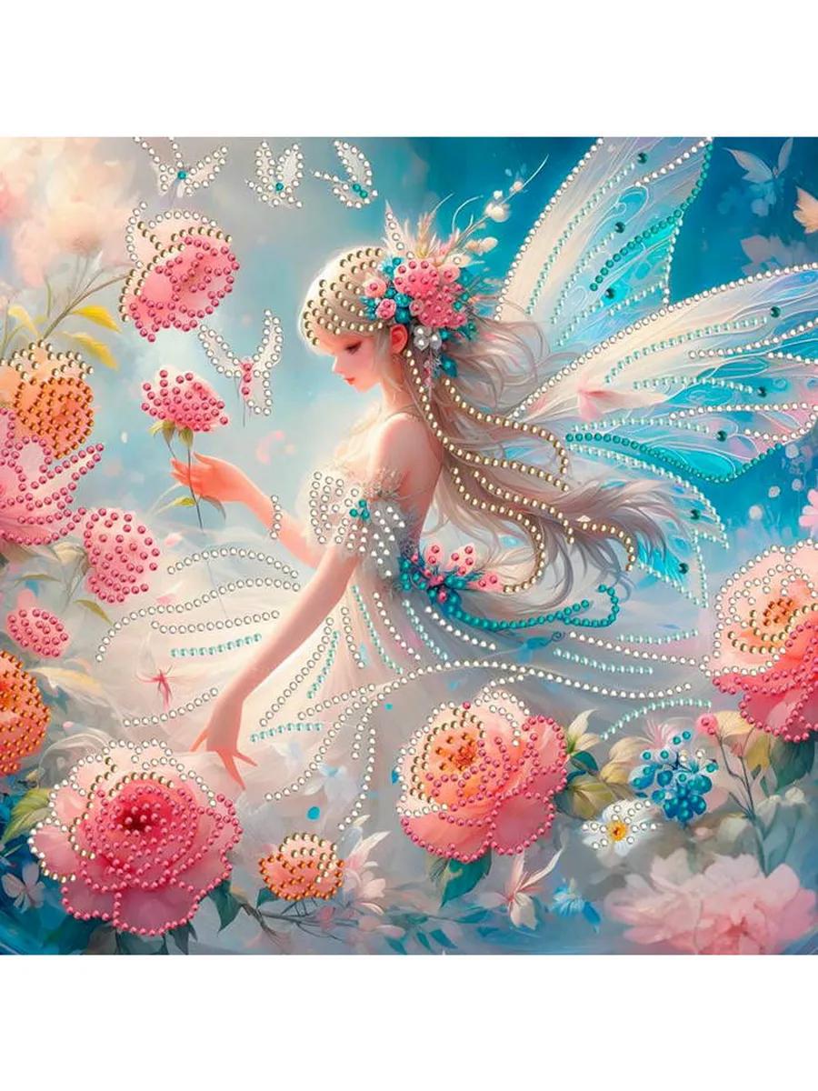 Мозаика алмазная 30*30см."Цветочная фея" с подр.,с част.зап.