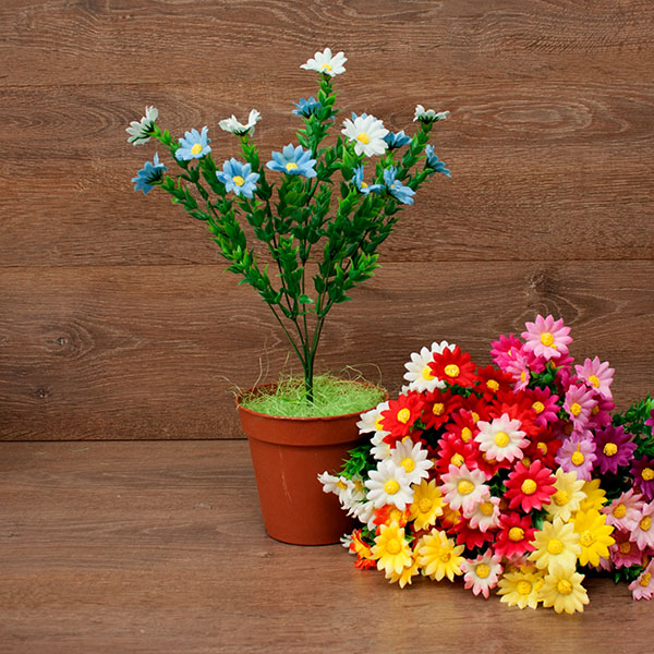 Цветы пластиковые Ромашка в траве 5веток 35см. 9видов